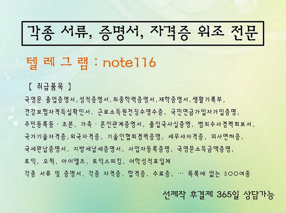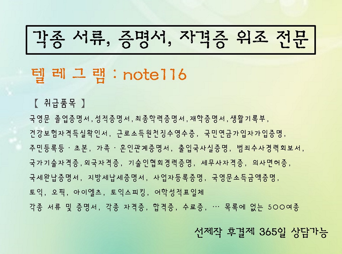 ?경력증명서위조제작▨텔레note116▨?